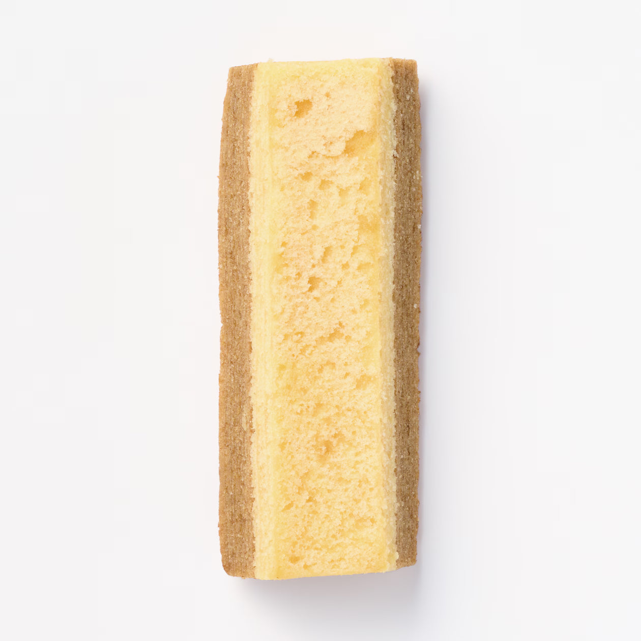 原材料: 液卵(国内製造)、砂糖、マーガリン、油脂加工食品(植物油脂、ホエイパウダー)、小麦粉、スイート粉(大豆粉、米こうじ粉末、でん粉、食物繊維)、ショートニング、小麦ブラン粉末、食用加工油脂、コーンスターチ、小麦たん白、乳等を主要原料とする食品、プロセスチーズ、食塩/加工デンプン、グリセリン、トレハロース、乳化剤、膨脹剤、増粘剤(ブドウ糖多糖)、香料、安定剤(カゼインNa、キサンタンガム)、pH調整剤、着色料(アナトー、ウコン)、(一部に小麦・卵・乳成分・大豆を含む)